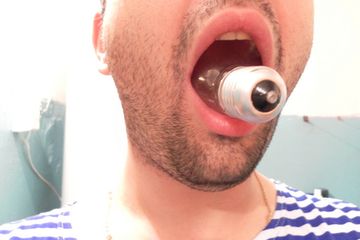 口中塞了个灯泡.不能打电话,我写了一张便条后便去找邻家那老妇! 。她一见我便大呼救命 ..我立即给她看我的便条— please call me a taxi and tell the driver to take me hospital. (请招呼一辆出租车,还请告诉司机载我到医院。) 15分钟后,出租车来了。司机一见我,笑了一回 还不停的问我何以这么做 ,还不停说我的口太小,如果是他的口便没有问题。他的口真是很大,我好想告诉他无论如何不要试吗,可惜我开不了口!