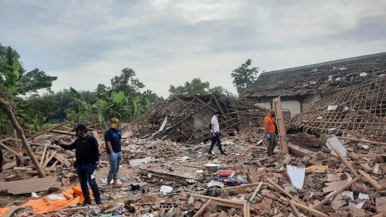 东爪哇警区的机动警察拆弹小组对 2 间被爆炸摧毁的房屋进行了搜查。紧随其后到现场的是法医实验处的小组。