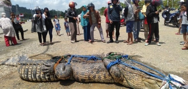 【华闻】东古戴讯。东加里曼丹省东古戴县本卡仑Bengalon镇8岁小孩在河流活动时被鳄鱼猛扑吞噬。捉捕鳄鱼后剖腹发现小孩遗体。