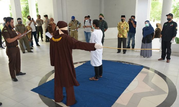 据了解,伊斯兰教规检察官周四(24/9)在万达亚齐市莎莉公园执行当众鞭笞强奸犯RN。执行鞭刑之前,犯人首先经过莎拉Sarah医生检查,证明RN健康良好。