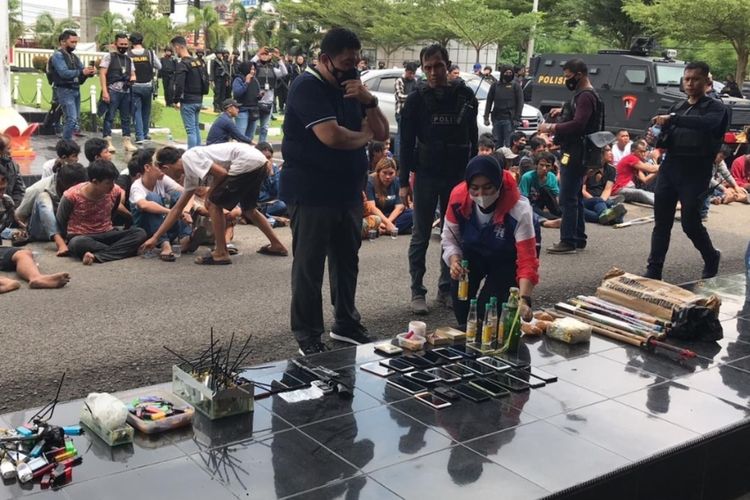 【华闻】巨港讯。巨港警察周日早上突击排查Tangga Buntung 区大毒窟,并逮捕65名嫌犯包括大毒枭妻子。警察攻破了毒窟,发现这毒品村有重重防范设备。