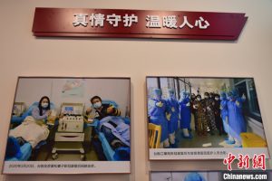 图为专题展陈中展出与台胞相关的抗疫图片。 中新社记者 马芙蓉 摄