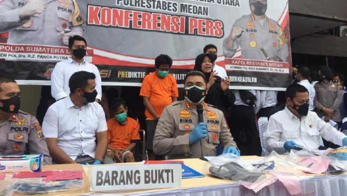 棉兰都市警察局长李戈Riko Sunarko大警监周三(2/6)告诉记者说,警方侦破的是一起谋杀案。他说明事发经过,较早时,凶嫌MAK及MA计划如何抢劫受害者。是日,MA携带一支刀会见MAK并说,有工好做了(是偷窃暗号)。