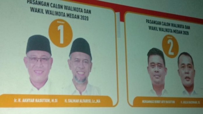 二号组合鲍比与奥利雅将和一号组合阿克雅与萨尔曼(Akhyar Nasution-Salman Alfarisi)争夺棉兰正副市长席位。