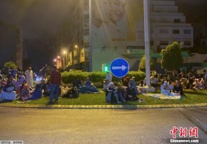 图为摩洛哥发生强烈地震后,人们聚集在街道上。