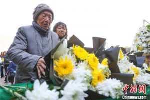 冬日暖阳照在这位历经苦难的鲐背老人身上。在当日的南京大屠杀死难者家庭祭告活动中,她颤颤巍巍地从座椅上站起,带着自己的女儿、外孙女、外曾孙走到遇难者名单墙前,为南京大屠杀惨案中的死难者献上鲜花并深深鞠躬。仪式上,中共南京市委宣传部副部长、纪念馆馆长周峰为遇难者名单描新。