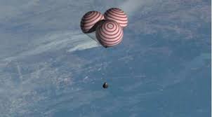 “神舟十二号,返回制动开始!”飞船推进舱喷出耀眼的火焰,速度慢慢降了下来。不一会儿,大厅调度里传来“推返分离”的口令,搭载着3名航天员的返回舱,沿着预定返回轨道直奔地球而来。