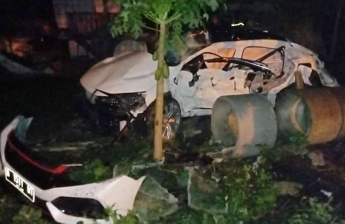 岩望警察局交通警察队长古乃菲A Kunaefi,二级督察周一(5/11)告诉记者说,据了解,周日晚上(14/11)一辆由大学生伊凡(18岁)驾驶的本田牌Civic型汽车,载着三名同学从岩望开往泗水。行驶至21点34分时,汽车左拐弯入乡村道路 经过没有守卫栅栏服务员的火车平交道口。 当时有从东边开往西边的火车经过,伊凡没有专心驾车,就直接撞上火车。汽车被弹飞,驾驶员及2名乘客当场毙命。另一名乘客重伤送医抢救,在院抢救不治丧亡。