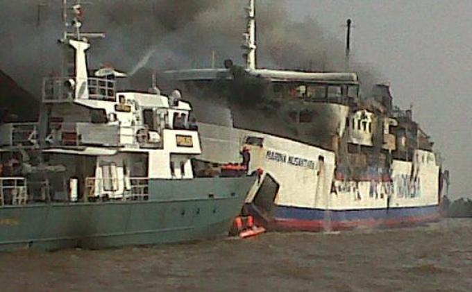 【华闻】泗水讯。国家搜救机构泗水分站发布的信息说,东爪哇省泗水市—锦石之间的海域周六(23/1)发生两艘船,分别为Tanto Bersinar号船 与TB Mitra Jaya XIX号轮船相撞事故,造成5名水手失踪5名获救。