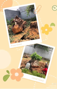 2022年1月10日,为了小巷里的安全隐患问题,邻里开会决定把我家对面空地上那棵枝繁叶茂、高十来米的菩提树砍得只剩下一段树墩。不久后,树墩上又长出新枝嫩叶,满目青绿,可惜的是,过不了两三个月,又会有工人来砍草,顺便把菩提树的新枝叶也砍伐一空。