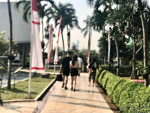 某个周六,送小孙女去某公寓楼的泳池学游泳,把她托付给教练后,我自行去晨运。突然一对年轻恋人的背影吸引住我的目光,女孩腰肢如宋徽宗瘦金体勾勒的弧线,恰似杜牧诗中“楚腰纤细掌中轻”的千年余韵。