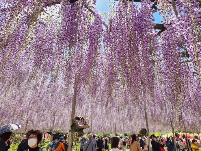 走进占地甚广的‘足利花园’,与花海似的紫藤一照面,这单程两小时完全是值得的!