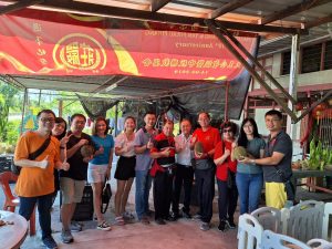 今年开春, 宗亲们相聚古晋,有位槟城宗亲庄金来,拥有一片榴莲园,邀我们五月份到他那里品尝榴莲,所以这次成行,便打个电话与他联络,他非常高兴地约个时间,给了地址。
