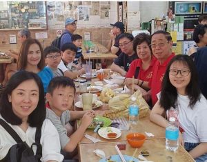 那是一家传统农舍,寛阔的前廊摆放着几张桌子,四周一片园林,醒目的是角落一筐筐的榴莲,还有红毛丹,龙贡,波萝蜜等,园主太太正带着两岁多的小孙女坐在木制的围圈内玩,里头还有儿童滑梯。由雪隆来的几位宗亲也带着澳洲回来的亲戚到这里吃榴莲。