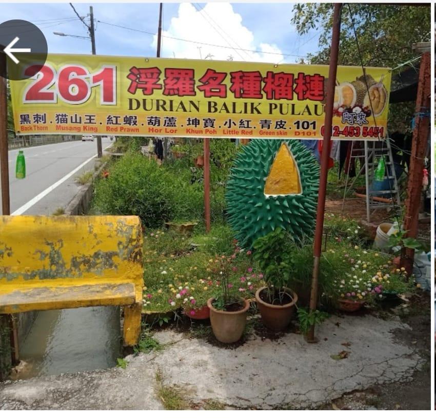 这天天气晴朗,我们租了面包车,携带儿女及孙子们一行十多人浩浩荡荡出发,出了城外约半个小时,开始向山上行驶,道路弯弯曲曲,沿途可见山上许多榴莲树,结着拳头大的榴莲。越过山头,渐渐走下坡路,见一村子,就是峇立普佬( Balik pulau ),全程 共走了约两个小时才到达目的地,园主已等候多时。