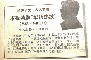 “热线”启用后,我一上班就按时守候在专线电话机旁7个小时,即时回答读者提出的各种各样的语文问题。9点钟后,还得有选择地将当天读者的问题以问答的形式整理成文,交给副刊《商余》版的“华语热线”专栏发表,次日见报。
