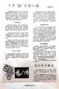 一千多年来,“囍”字深受国人喜爱,但是依然徘徊在规范型辞书的大门之外,不知何时才能跨过门槛,进入规范型词典的殿堂。
