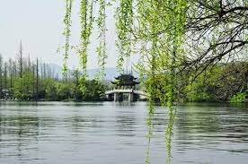 出丰渚园,往元妙观方向走,这是我至为喜爱的一段路,这里还曾留下我工作过的足迹。那时候,这里叫桃花溪,地如其名,乡野气息尚存,一条小溪傍西湖而流,当时这里是城乡结合部,一栋栋农家自建小楼面向湖溪,屋前瓜棚豆架,硕果累累,青菜滴翠,花草葳蕤,蜂飞蝶舞。而沿溪的桃花消失在过去的年代,彼时没有桃花灼灼,却有丛丛婀娜翠竹依水而立,四周景色质朴自然,恬静优美。还有我,穿一件红色的套头毛衣,牛仔裤,梳一根麻花长辫子,十分协调地常常出现在这画面中,我的出现与那遍布溪面的杂草有关。这里是我们单位的管辖地,我所在的部门管辖区内的卫生,桃花溪里没有清流潺潺,落英缤纷,而是积水中杂草丛生,成为蚊虫孳生地,影响了周边居民群众的生活和健康。