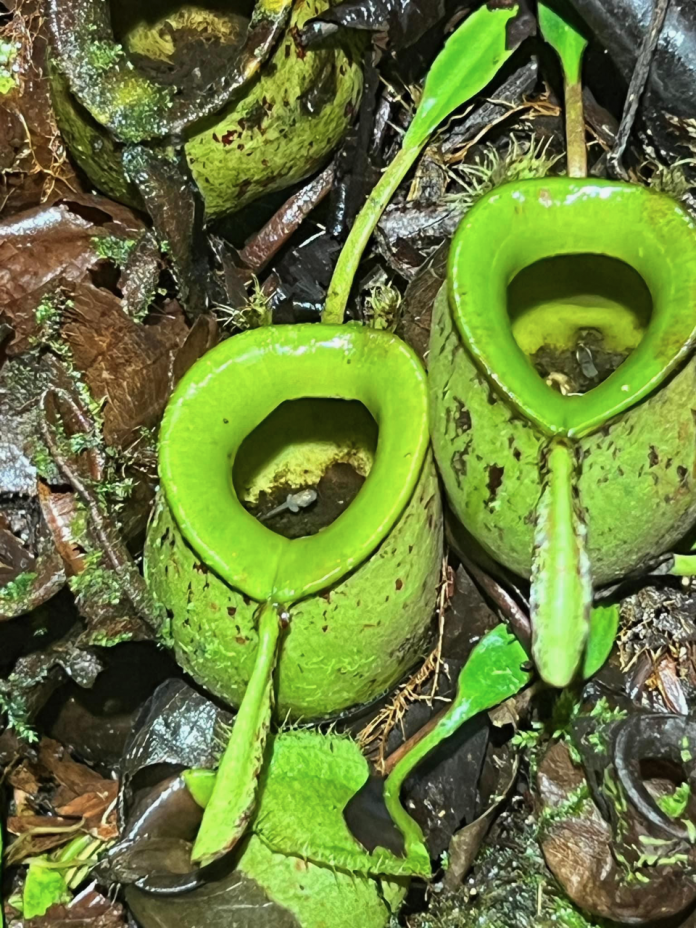 最珍奇的莫过于猪笼草姬蛙。这是目前已知的世上第二小的青蛙,成蛙才约一至二公分长,主要分布于库巴国家公园附近。它们的生活圈主要围绕于苹果猪笼草,公蛙会在猪笼草上呼唤另一半,交配后,母蛙在积水的猪笼草里产卵,因此我们能在猪笼草里看见长约3毫米的小蝌蚪。在人类世界活久了,太阳底下无新事,但自然界里从来就不缺惊喜。