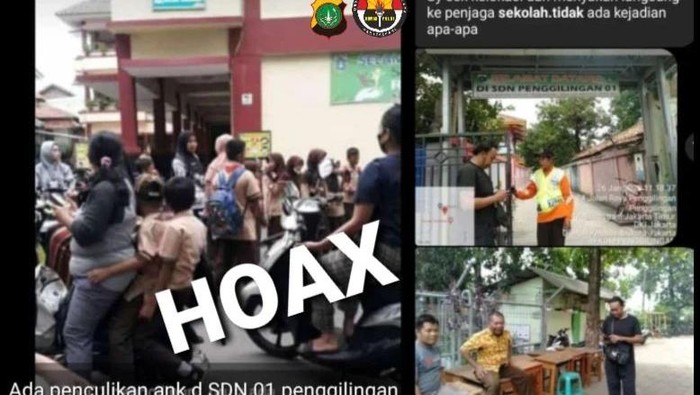 如所周知,从周六(28/1/2023)开始,网上盛传若干拐卖儿童的画面。有几人被叙述为绑架的肇事者,还有他们的照片。照片下面是呼吁公众对这些肇事者保持警惕。内容为:“请保持警惕,因为目前是印度尼西亚儿童遭绑架的季节。警惕!!1-12 岁的儿童被绑架。女士们,先生们,你们必须小心看管各自的孩子!乡镇和村庄正在发生拐带儿童事件。拐骗者伪装成:卖货郎、货车司机、孕妇、乞丐,”假新闻如此说。 在另一张照片中,还可以看到发生在德博(Depok)市等多个地点的拐骗儿童信息。照片上面还带有美都查雅警区Polda Metro Jaya和国家警察民众辅导Binmas Polri标志的标语,附有传播有关拐骗案的信息。