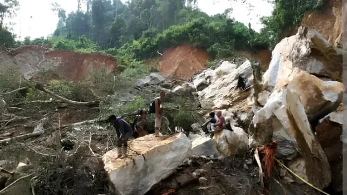 【华闻】梭洛讯。印尼苏西省梭罗(Solok)县一处非法金矿于2024年9月26日星期四发生山体滑坡。此次滑坡掩埋了40名居民,其中15人死亡,25人失踪。