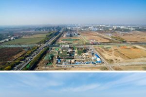中关村科技城内有许多类似天泽电力的公司。作为北京和天津共同实施国家战略以推动京津冀协同发展的主要合作平台,也是中关村首个位于北京以外的资产密集项目,中关村科技城占地面积14.5平方公里,总共登记了来自不同行业的1,529家市场主体,其中有502家于2023年新增。这组组合照片展示了中国北方天津市中关村科技城的景色,分别摄于2018年12月31日(上方,文件照片)和2024年2月22日(下方,由孙凡悦用无人机拍摄)。(新华社)